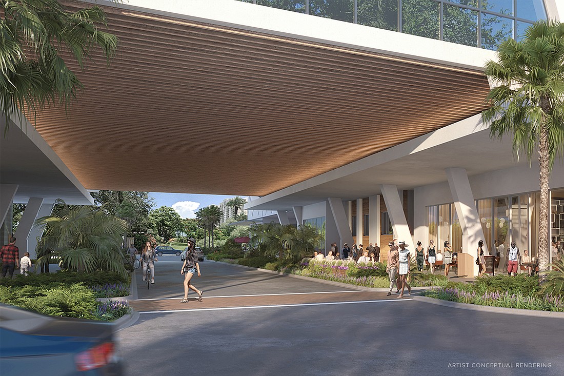 Outdoors on the ground level, One Park Sarasota will deliver a 76-foot wide, 22-foot high, beautifully designed, well-lit and safe breezeway above Quay Commons with access to The Quay and The Bay Park from the Boulevard of the Arts. This dynamic pedestrian walkway will not only bring safe, widened sidewalks and lush greenery to an otherwise vacant space, but will also activate the space for Sarasota locals and residents. While the City of Sarasota code does not require the project to have any retail space, the developers of One Park are planning more than 13,000 square feet of retail, dining, and outdoor cafe seating. Whether someone is looking to grab coffee or find respite during a particularly rainy or hot summer day, this activated space will benefit all who visit The Quay by offering a seamless way to commute to and from its array of shopping and dining venues.