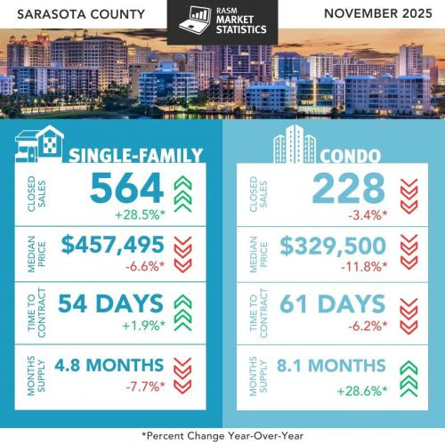 SARASOTA, Fla. (December 19, 2025) – The REALTOR® Association of Sarasota and Manatee (RASM) has released its November 2025 real‑estate market report, providing a snapshot of market conditions across the two counties. According to data from Florida REALTORS®, November’s housing market showed divergent trends between single‑family homes and condos/townhouses and between the two counties.